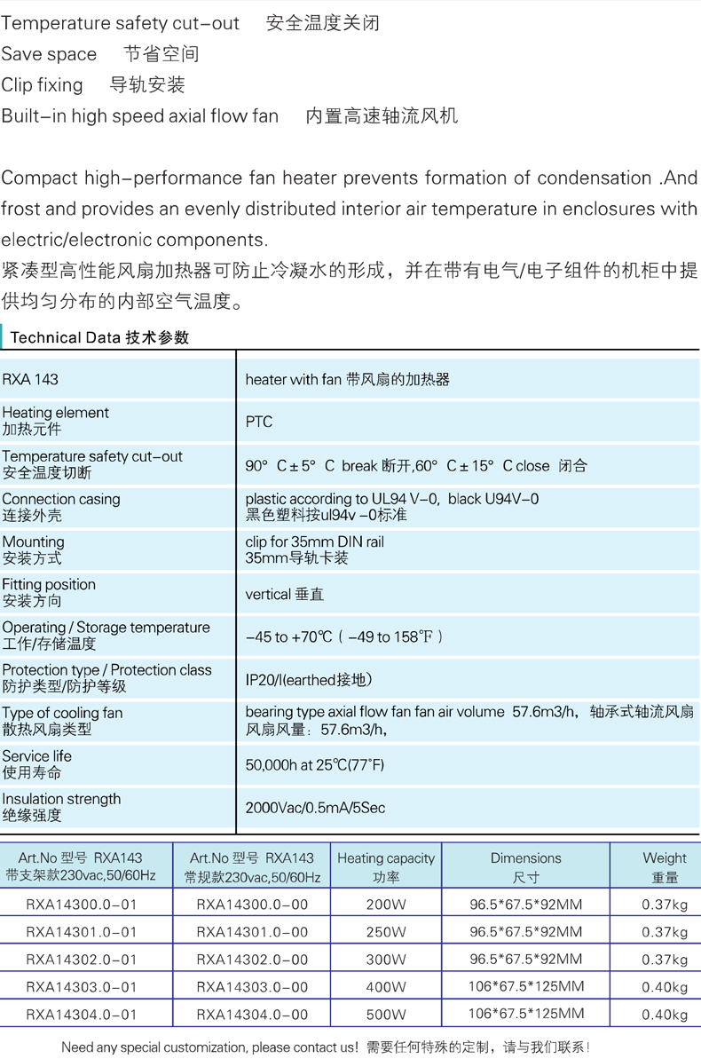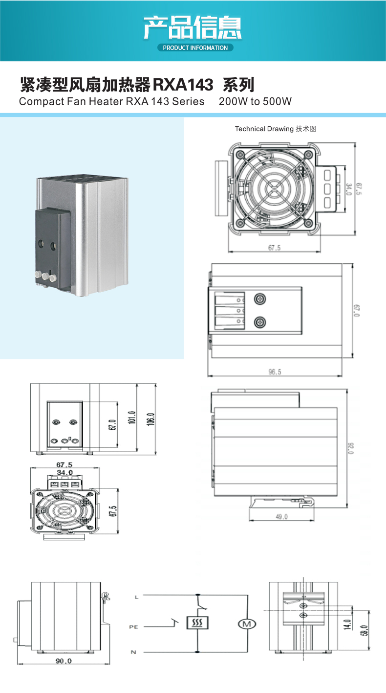 緊湊型風扇加熱器RXA143系列